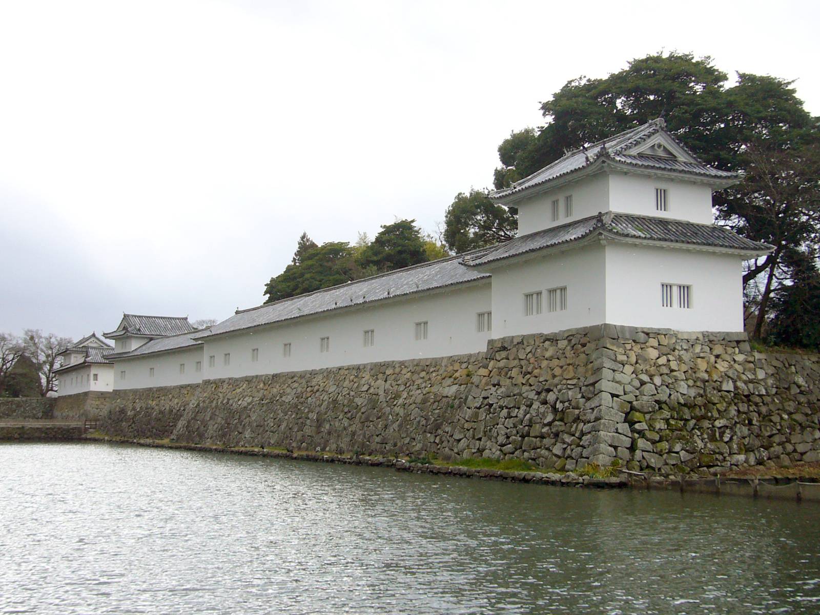 標高136mの彦根山に築かれた彦根城は、彦根山が金亀山の異名を持つことから金亀城(こんきじょう)とも呼ばれ、江戸幕府における譜代大名筆頭の井伊氏14代の居城として幕末まで続いた。現存12天守のひとつである彦根城天守は、国宝に指定された国宝5城にも数えられる。彦根山の南北に細い尾根を削平し、南から鐘の丸、太鼓丸、本丸、井戸曲輪、西の丸、出曲輪、観音台、山崎曲輪を直線的に連ねた連郭式平山城である。彦根山周囲の山裾は、緩やかな斜面を垂直に近い角度で削り取って断崖としており、この山切岸によって山上への敵の侵入を防いでいる。山下には二の丸、三の丸を輪郭式に配し、城域を内堀、中堀、外堀と三重の水堀で囲んだ惣構の城郭であった。彦根城の建築物には多くの移築伝承が残り、大津城(大津市)から移築の天守を始め、佐和山城(彦根市古沢町)から太鼓門櫓と佐和口多門櫓(非現存)、小谷城(長浜市湖北町)から西の丸三重櫓、長浜城(長浜市公園町)から天秤(てんびん)櫓、他に観音寺城(近江八幡市)からも移築されたと伝わる。建物や石材の移築・転用は費用削減と工期短縮のためにおこなわれたものと考えられる。現在、彦根城の中心となる本丸には天守しか残っていないが、かつては藩主の居館である御広間(おんひろま)や宝蔵、矢櫓、着見(つきみ)櫓なども建てられていた。牛蒡(ごぼう)積みの天守台に載せられた天守は、附櫓と多聞櫓を伴う3層3階地下1階の複合式望楼型で、比較的小ぶりではあるが、屋根には入母屋破風、切妻破風、千鳥破風、唐破風を多様に配置している。1層目の大壁の下に下見板が取り付けられ、窓は突き上げ戸となっているが、2層目と3層目には花頭窓を配し、3層目には高欄付きの廻縁を巡らせるなど、外観に重きを置き、変化に富んだ姿を見せている。その構造は、通し柱を用いず、各階ごとに積み上げていく方式を採用しており、全体として櫓の上に望楼を載せる古い形式を残している。昭和32年(1957年)から行われた解体修理により、墨書のある建築材が発見され、天守の完成が慶長12年(1607年)頃であることが判明した。また、建築材を詳しく調査した結果、もともと4層5階の天守を縮小して移築したものであることも分かった。彦根藩主井伊家の歴史を記した『井伊年譜』に「天守ハ京極(きょうごく)家ノ大津城ノ殿守(天守)也、此殿守ハ遂ニ落不申目出度殿主ノ由、家康公上意ニ依て被移候由」とある。彦根城の天守は京極高次(たかつぐ)の大津城にあった4層天守を移築したもので、大津城は関ヶ原の戦いで西軍に降伏開城しているが、天守は戦禍を免れたので「目出度(めでた)い天守」としている。「いろは松」という松並木に沿った登城道の正面に佐和口があり、その枡形を囲むように築かれているのが佐和口多聞櫓である。佐和口は南の京橋口、西の船町口、北の長橋口とともに中堀に開く4つの城門の1つ。表門に通じる入口として、大手門に通じる京橋口とともに彦根城の重要な城門であった。現存する佐和口多聞櫓(重要文化財)は、佐和口に向かって左翼に伸びており、その端に2層2階の櫓が建ち、多聞櫓に連結している。多聞櫓は佐和口の枡形を囲むように2度曲折し、中堀に向って三角と四角の狭間が交互に配置されている。この多聞櫓の右端には、かつて2層2階の櫓門が枡形を見下ろすように存在したが、明治初年に解体され、現在は石垣のみが残る。ちなみに枡形より右翼に伸びる長大な多聞櫓も同時に解体されており、現在の櫓は昭和35年(1960年)に復元されたコンクリート製の建物である。この非現存の多聞櫓が佐和山城から移築したものであったという。